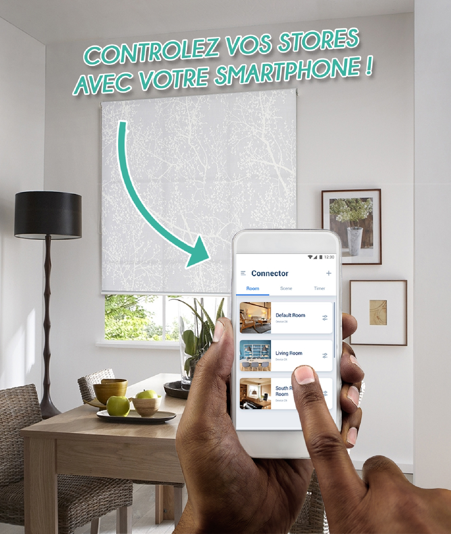 D'un simple tour de main avec votre smartphone, vos stores enrouleurs motorisés s'enroulent ou se déroulent selon vos besoins.