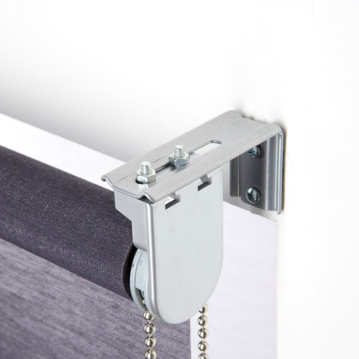 Jeu d'équerres métalliques avec boulons, disponible en blanc ou en gris métal, pour déporter votre store du mur ou de la fenêtre.