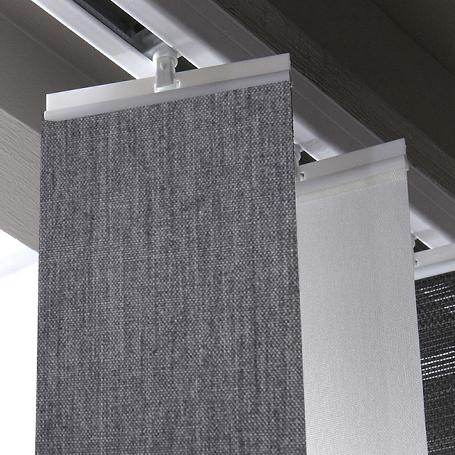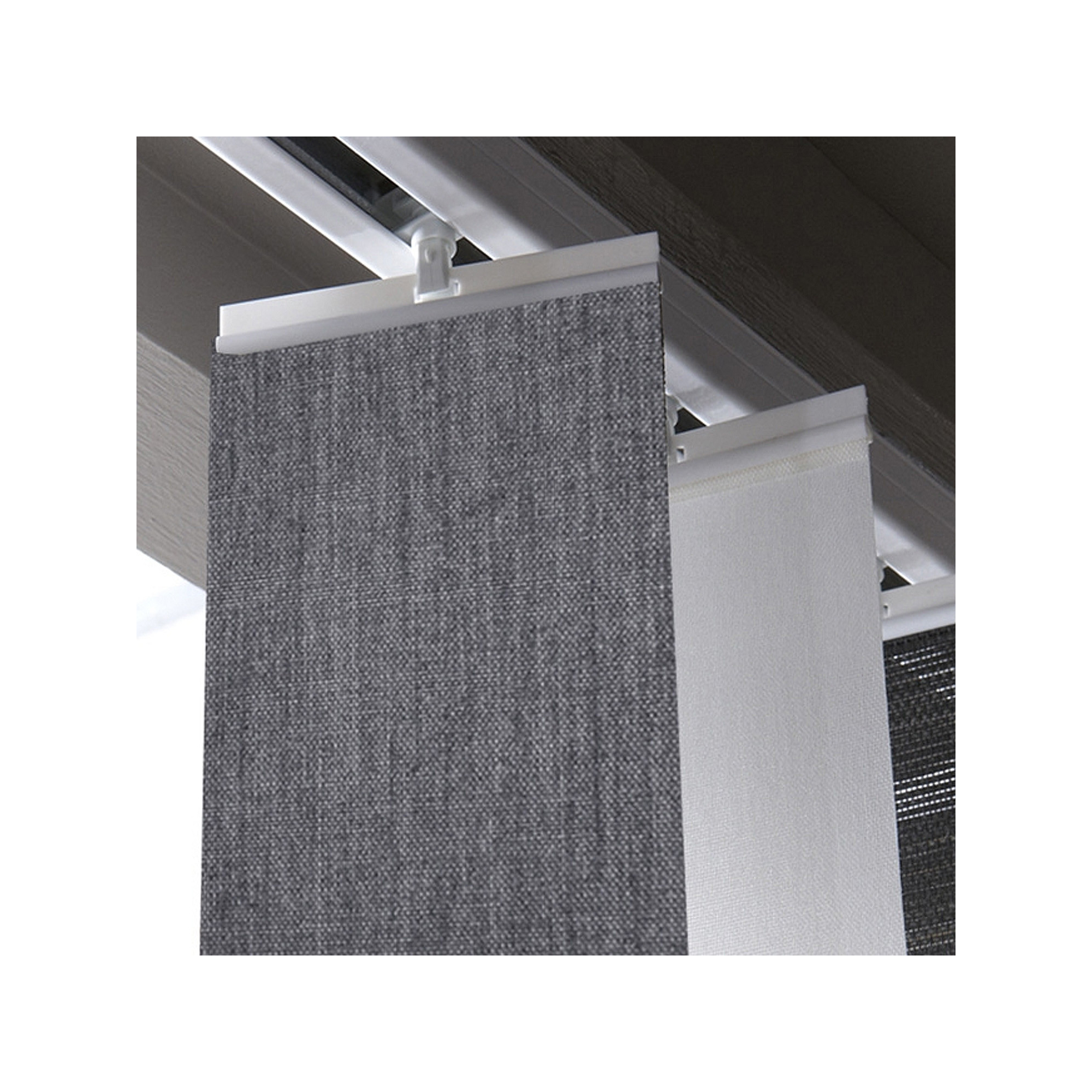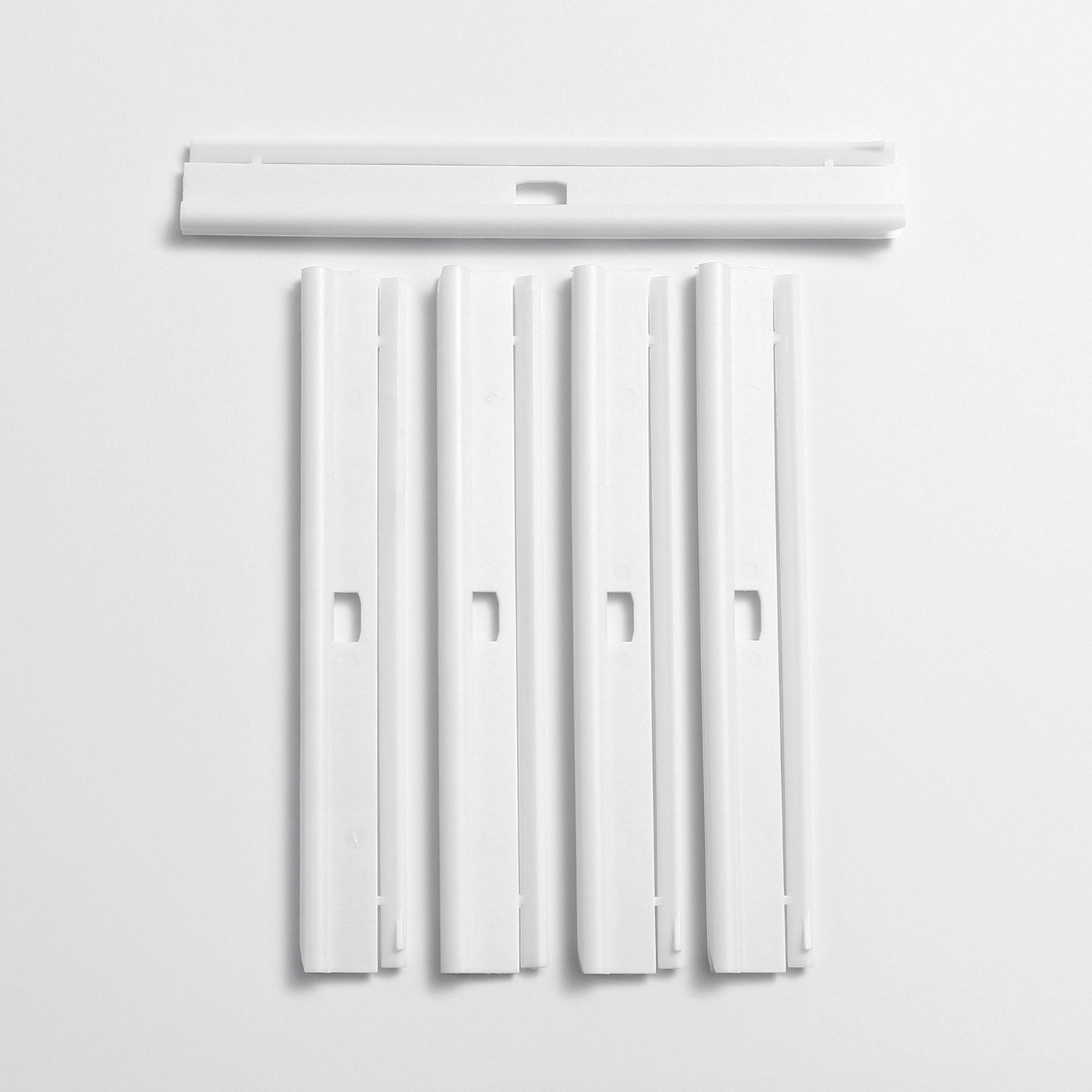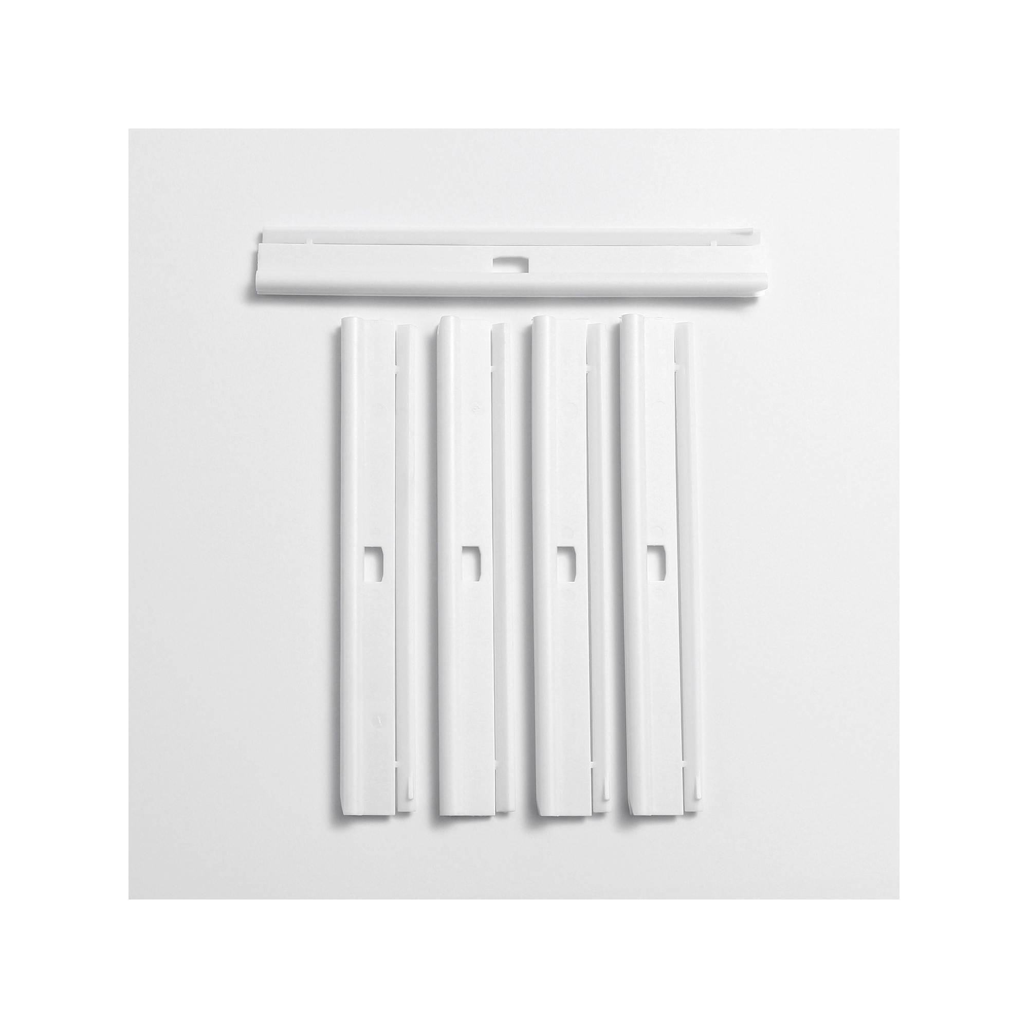 Jeu de 5 barrettes hautes pour fixer un store à lamelles verticales de 89mm ou 127mm sur les chariots coulissants du rail.