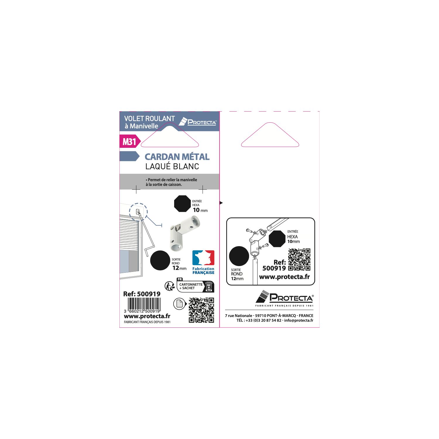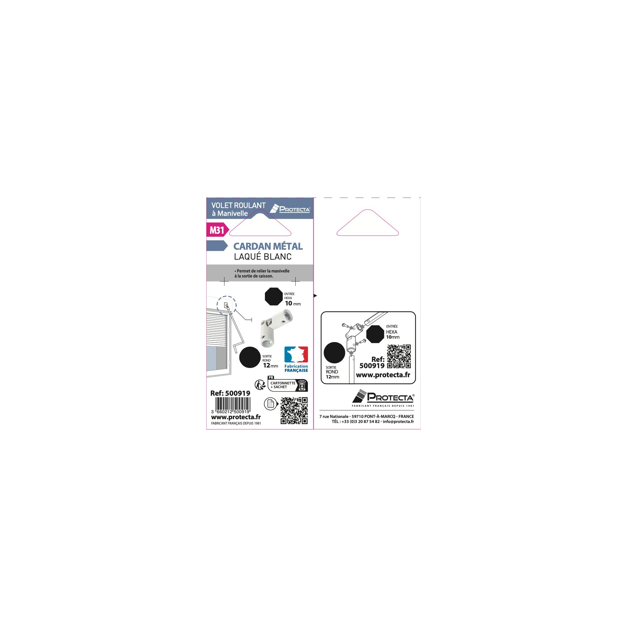 Équipez, entretenez ou réparez vos volets roulants PROTECTA avec ce cardan en acier de manivelle pour volet roulant.