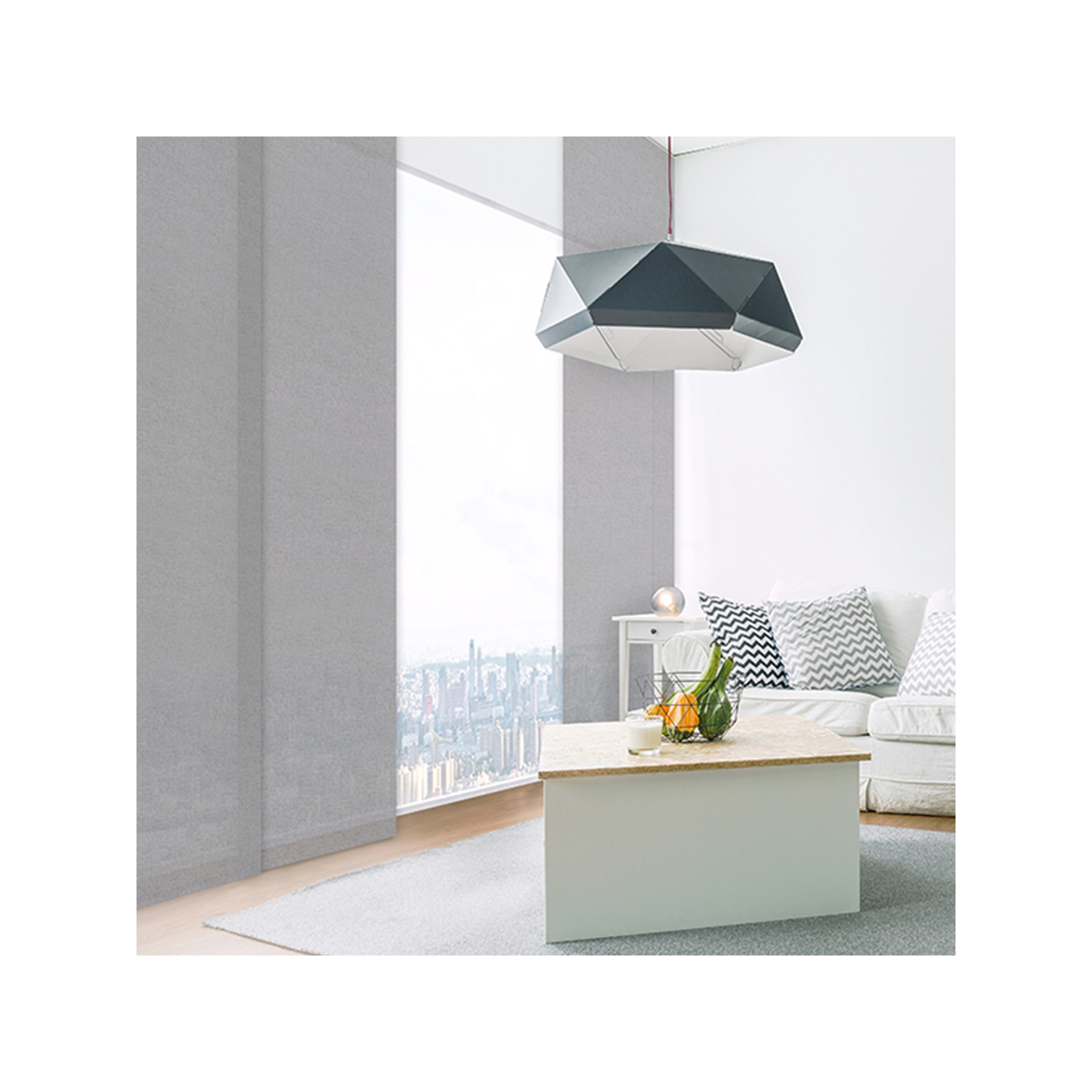 Panneau en tissu avec bande auto-agrippante (rail non inclus). Solution idéale pour habiller une baie vitrée, séparer un pièce ou cloisonner un placard.