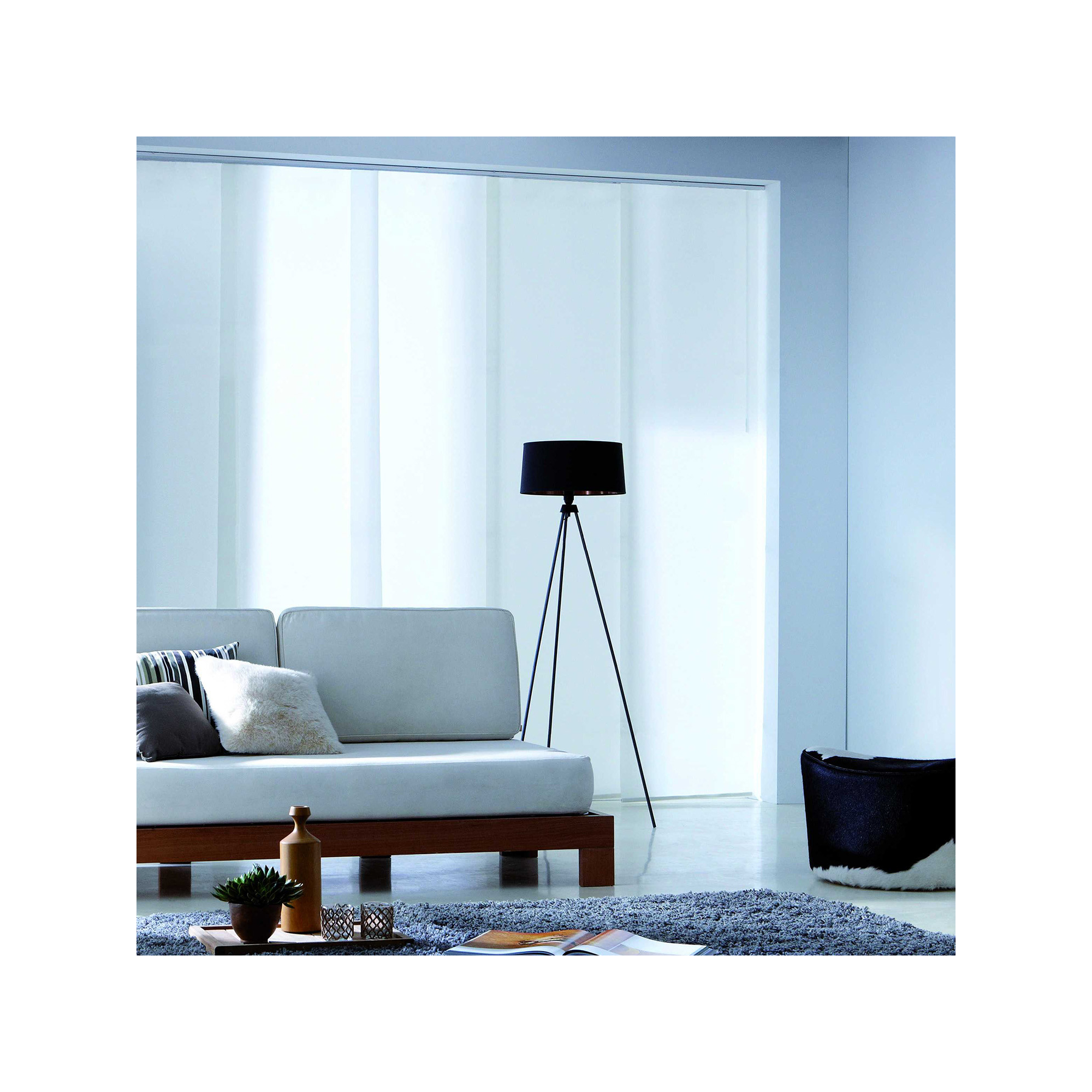Panneau en tissu avec bande auto agrippante (rail non inclus). Solution idéale pour habiller une baie vitrée, séparer un pièce ou cloisonner un placard.