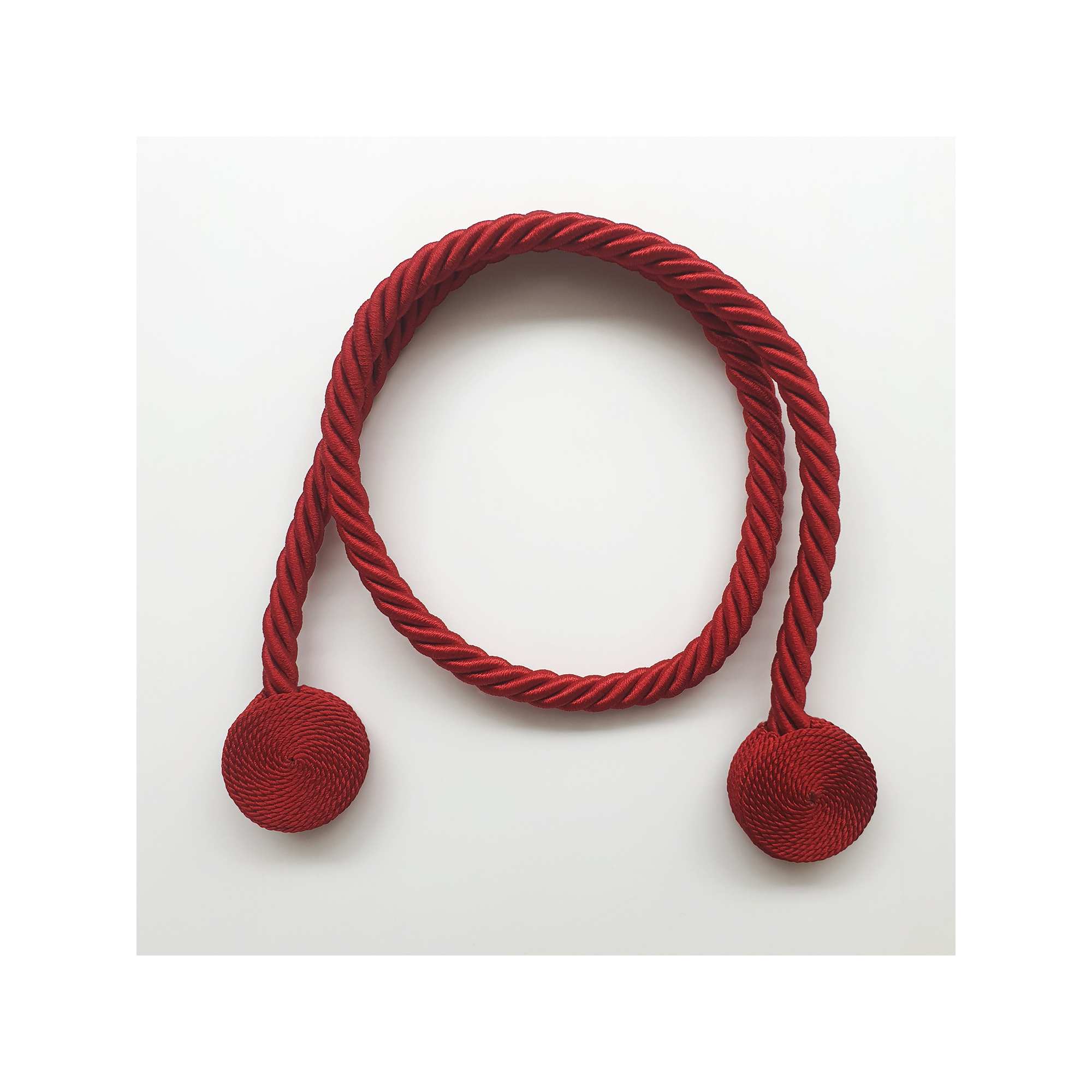 Cette embrasse vous séduira pas son élégance sobre et classique. Son lien fin et torsadé en corde se marie avec deux jolies boules aimantées. Celles-ci permettent une fermeture facile et une pose sans perçage au mur.