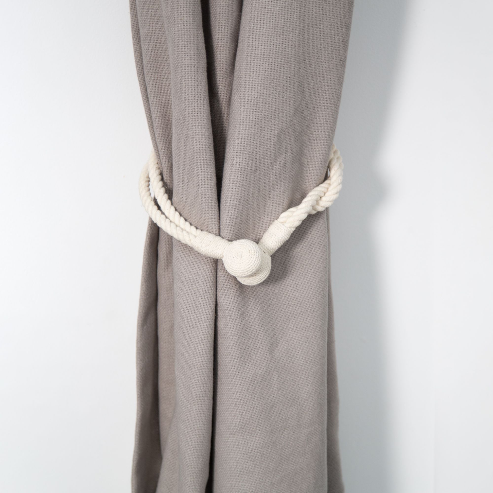 Cette embrasse vous séduira pas son élégance sobre et classique. Son lien fin et torsadé en corde double se marie avec deux jolies boules aimantées. Celles-ci permettent une fermeture facile et une pose sans perçage au mur.