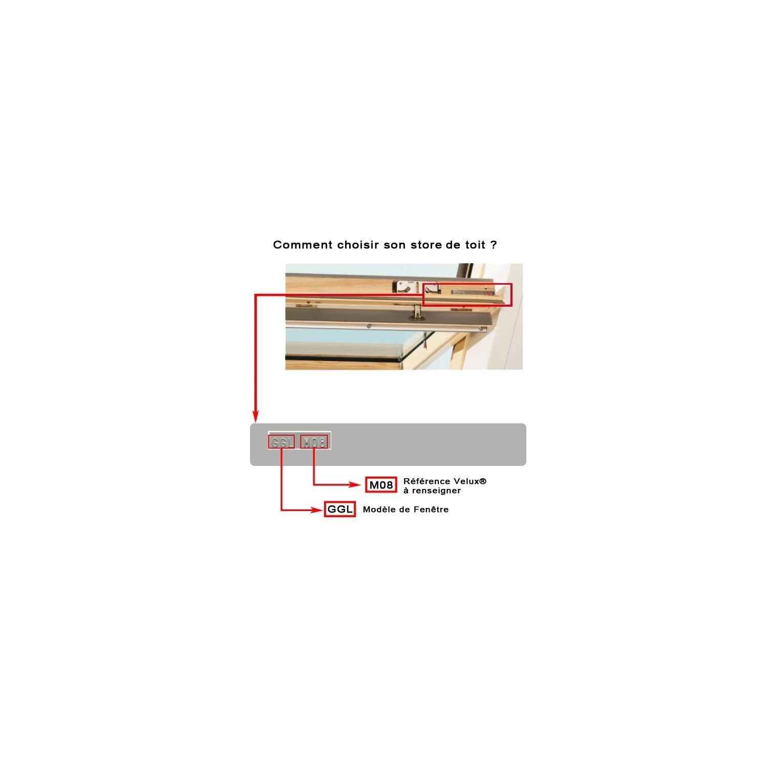 Ce store a été développé par Madéco sur la base des dimensions standards des fenêtres de toit Velux®, veuillez à bien vous référer à la référence Velux® présente sur la plaque d'identification sur le haut de la fenêtre.