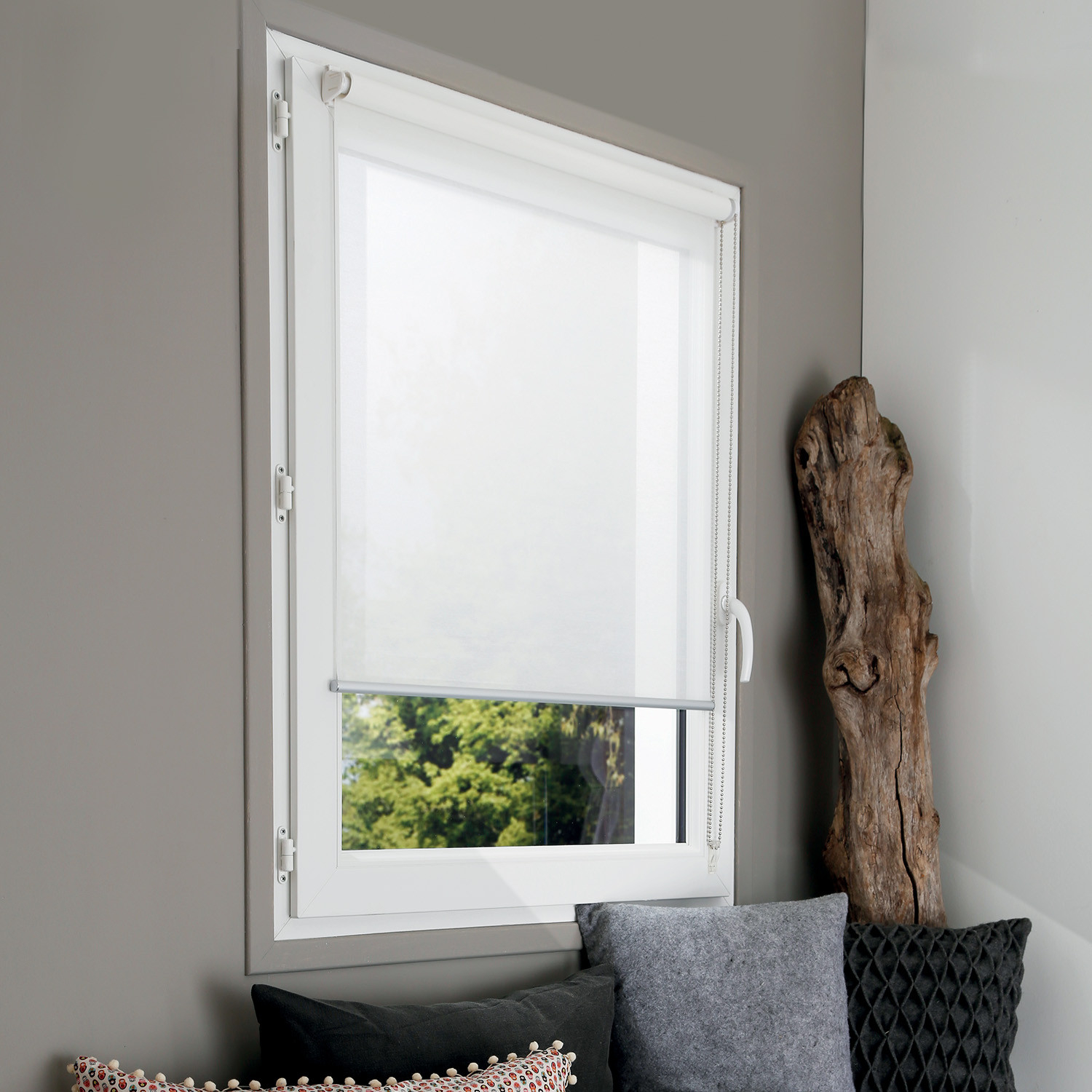 Store enrouleur ssez facile à installer, et donne un joli rendu. Tout en tamisant légèrement la clarté.