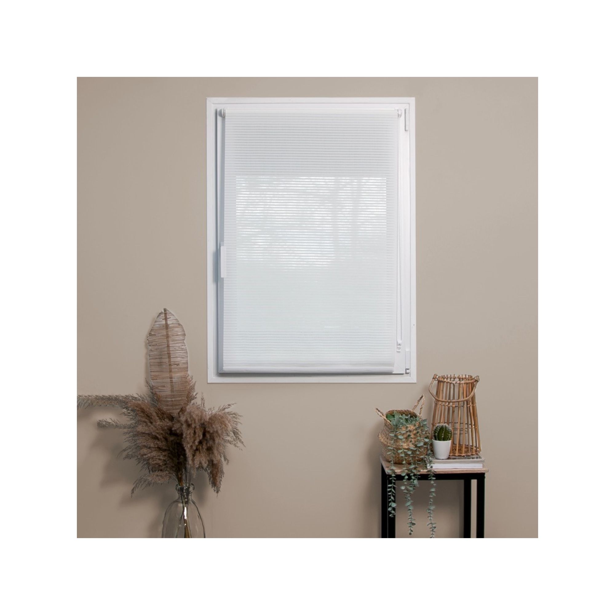 • Le store enrouleur blanc strié offre une diffusion douce de la lumière naturelle dans vos espaces tout en préservant votre intimité. Son installation est simplifiée grâce à un système de fixation sans perçage, permettant un montage facile par simple clipage.